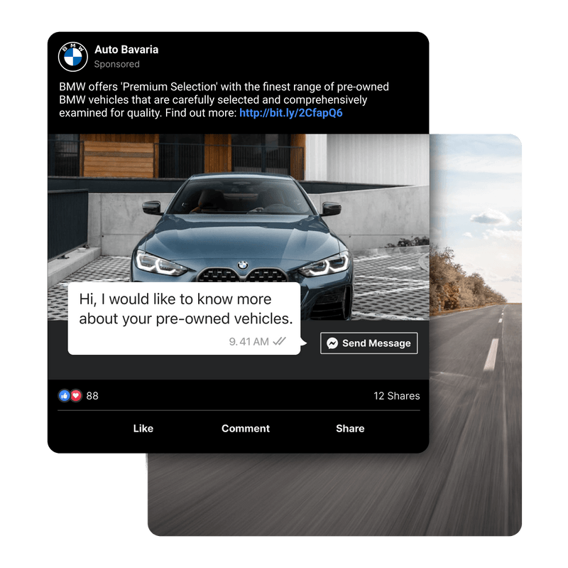 Buying or selling a set of wheels is rarely impulsive. Accelerate decision-making when you nudge customers with cross-platform promotions, then follow up directly in their messaging inboxes.