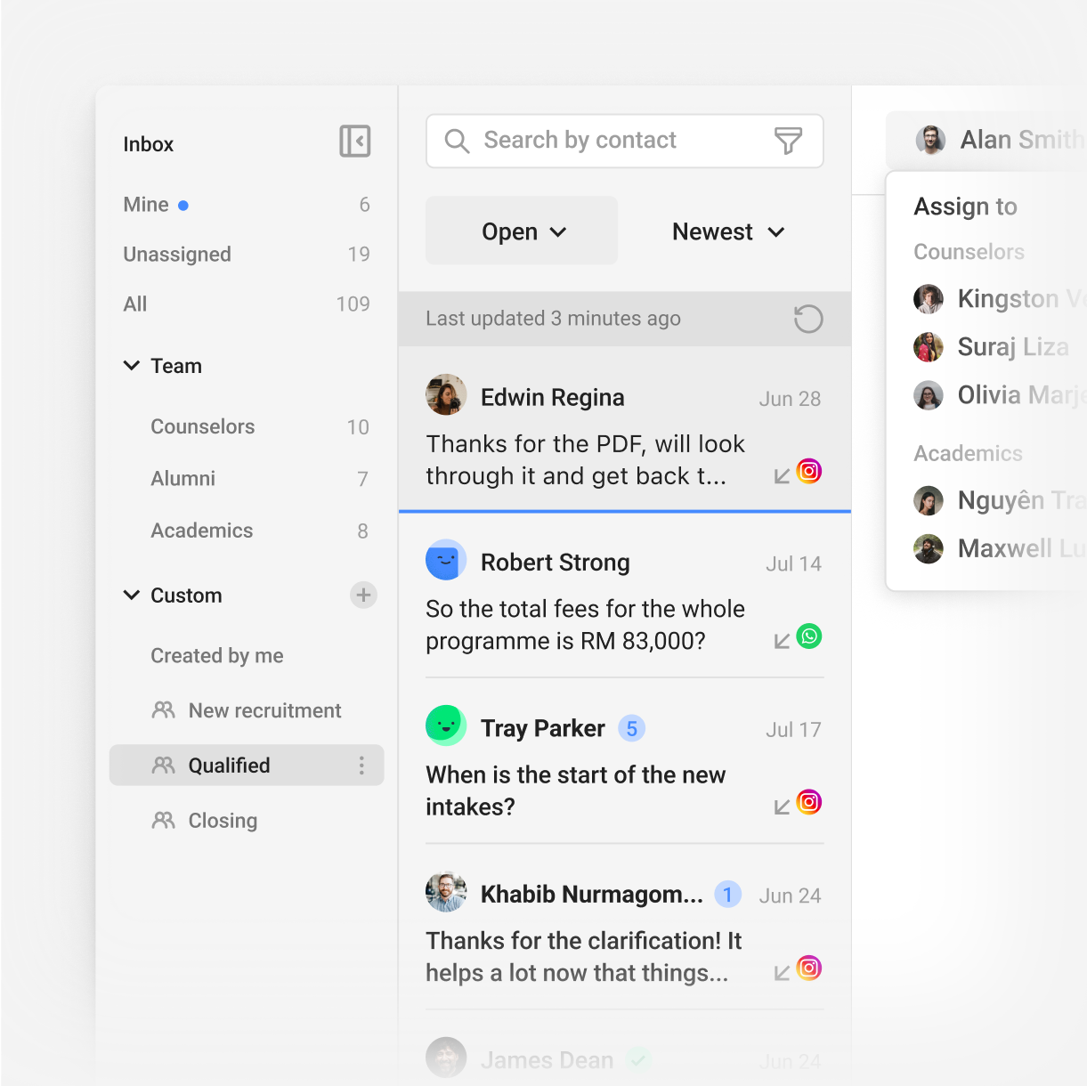 Whether you’re interested in alumni engagement, establishing contact with parents or retargeting students for courses, organize your communication into a single inbox, automation and analytics stack.