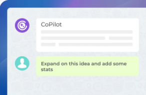 When it comes to communicating with your team, CoPilot acts as your trusted and knowledgeable assistant. It can write an announcement, reply to a comment, come up with an idea, or even suggest constructive criticism.