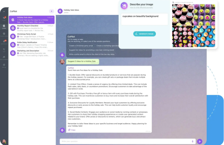 Our AI assistant CoPilot goes beyond simple automation. It helps your team brainstorm, write, and generate ideas, while also analyzing meetings and suggesting actionable improvements. Whether you’re drafting HR policies, preparing reports, or refining team communications, CoPilot saves time and adds intelligence to everyday tasks.