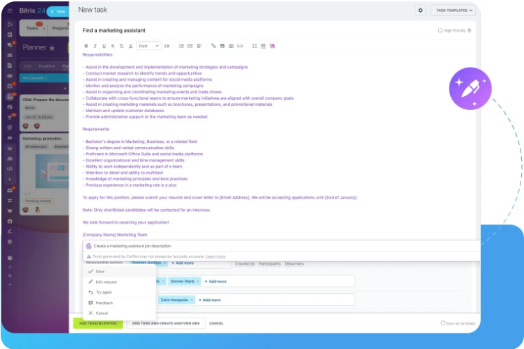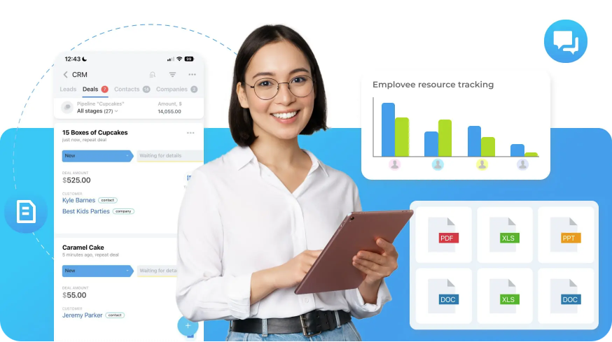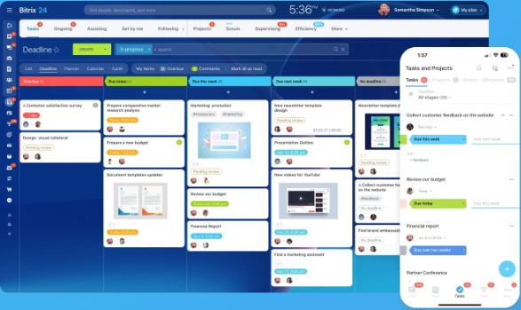 In addition to various task and project management tools, Bitrix24 features everything your team needs to collaborate and communicate efficiently: chat, video calls and conferencing, file storage, calendar, online documents, mobile app, work time tracking, CRM, and more.