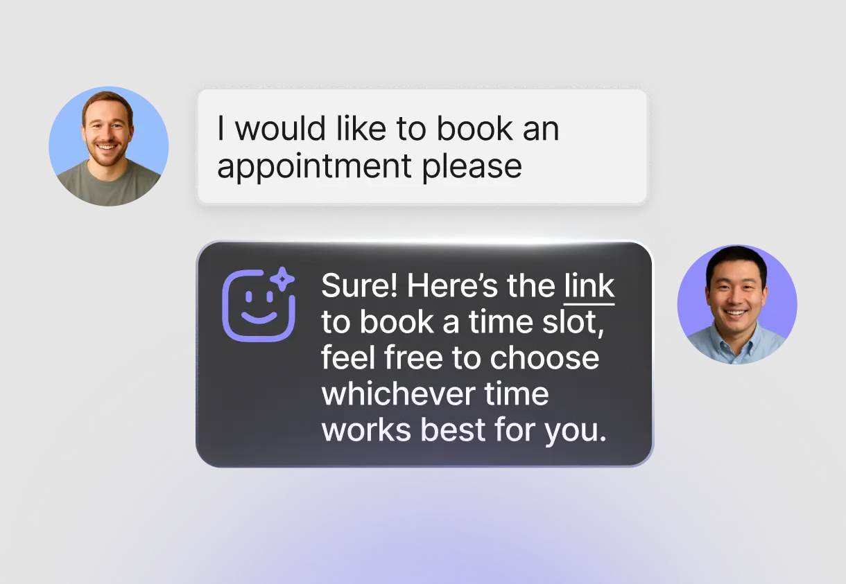 Let customers secure appointments instantly with links to schedulers like Calendly, Google Calendar and more as soon as they show interest. Integrate this seamlessly with your existing workflows to ensure appointments are booked accurately and without any manual effort.
