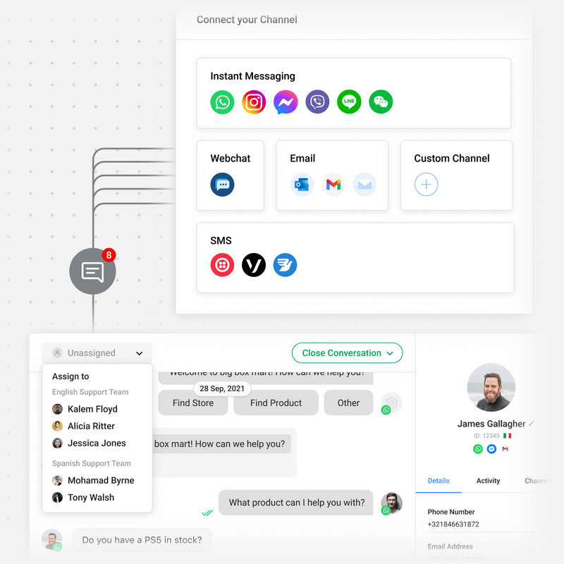 Have unique channels for your business niche? Add regional messaging apps, e-commerce platforms or others to work together with the rest of your support infrastructure.