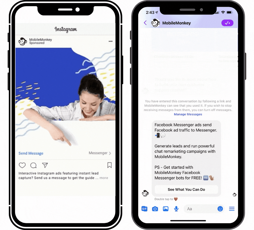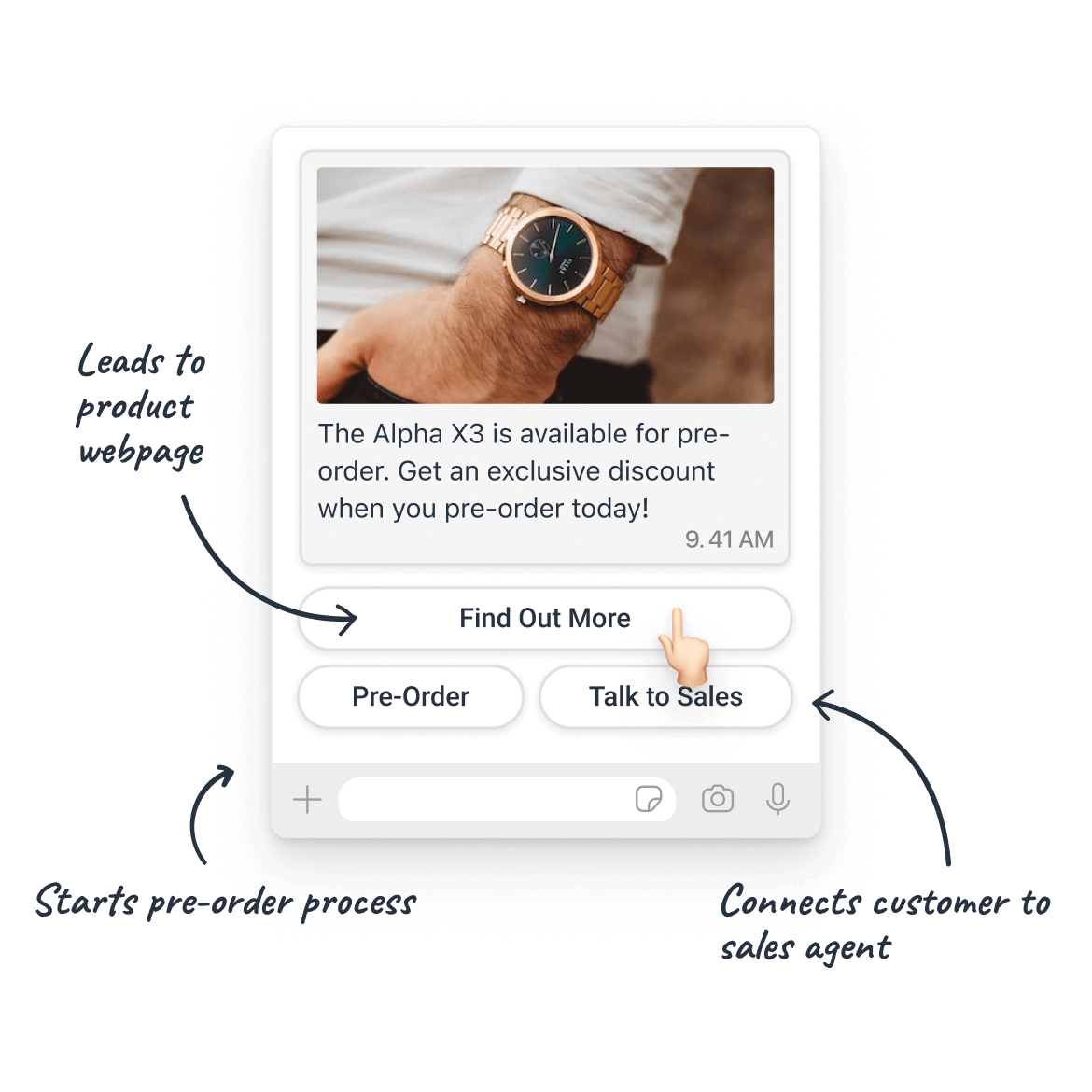 Upgrade your marketing with interactive instant messaging. Deliver real-time experiences like taking pre-orders, providing information or connecting leads to sales to improve conversions.